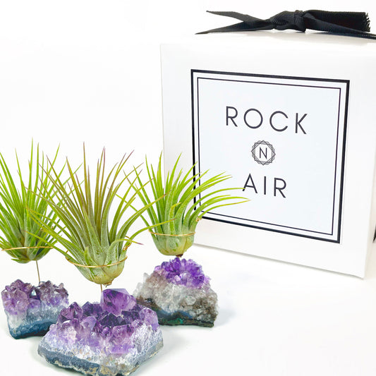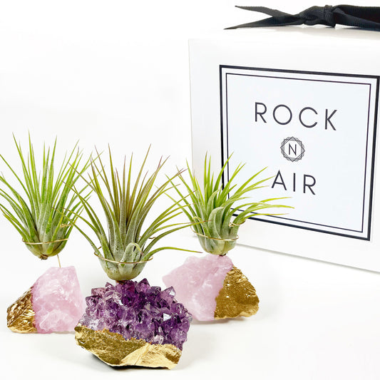 Small Gold Dipped Amethyst / Rose Quartz Crystal Air Plant Holders (Set of 3)