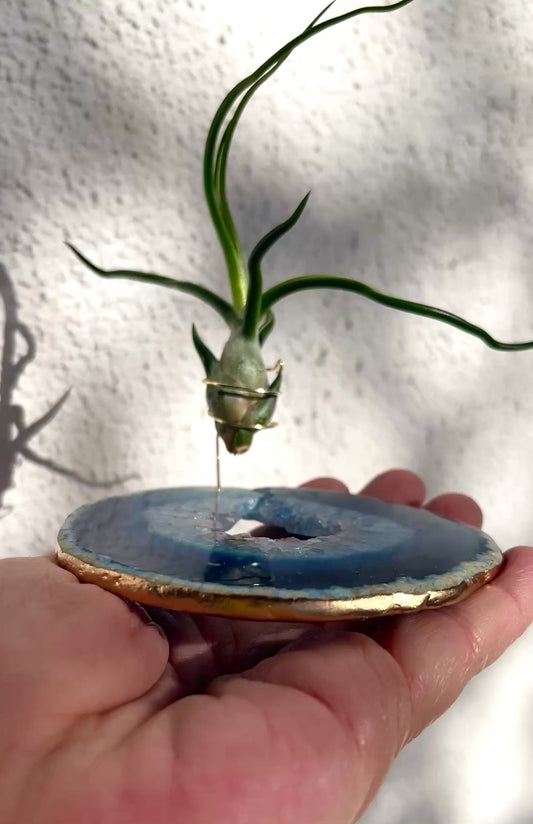 One-of-a-Kind Blue Agate Slice Air Plant Holder: Crystal Gift for Valentines Day