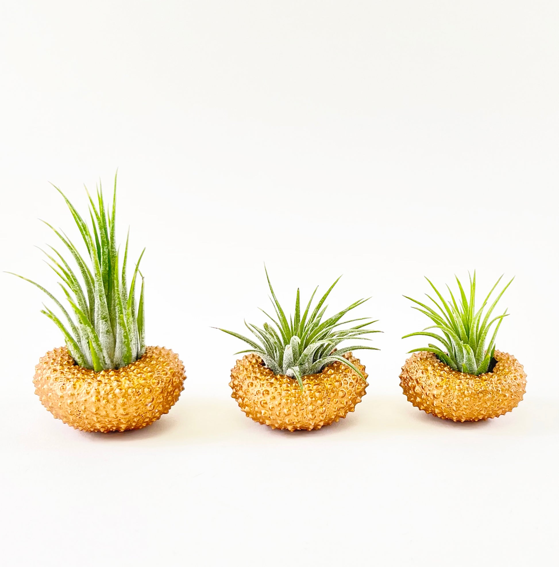 Bronze Metallic Sea Urchin Air Plants Holders (Set of 3) - Includes Healthy Live Air Plants and Gift Box