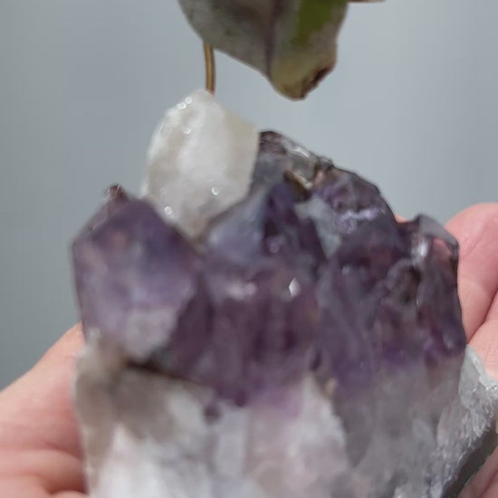 This handmade Amethyst Crystal with Calcite Point brings together nature, style, and good energy in one stunning piece. Each raw amethyst cluster is naturally formed, so no two are ever alike — making this the perfect gift for anyone who loves plants, crystals, and modern home décor.