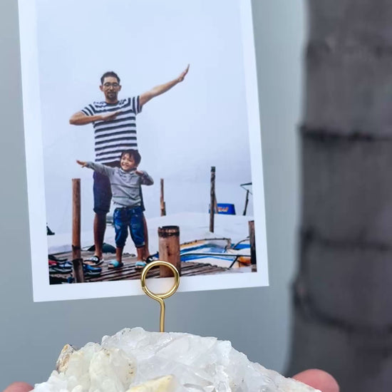 Whether you're looking to elevate your desk decor or find a meaningful gift, this clear quartz photo holder blends raw geological beauty with everyday functionality.